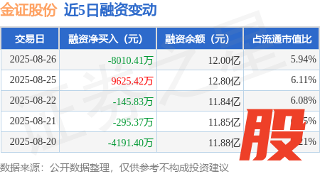 本站消息,8月26日,金证股份(600446)融资买入1.38亿元,融资偿还2.18亿元,融资净卖出8010.41万元,融资余额12.0亿元。