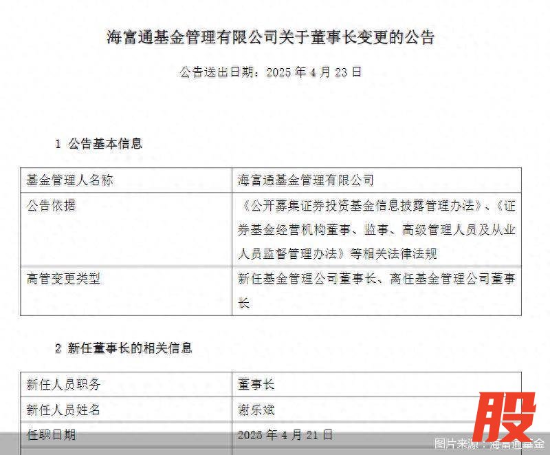 北京商报讯(记者 郝彦)4月23日,海富通基金发布公告表示简配资,董事长路颖因工作调整原因于4月21日离任,当日起,公司任谢乐斌为董事长。